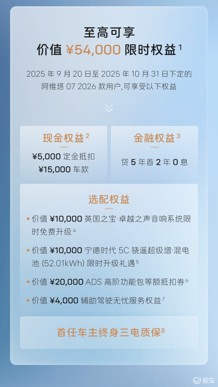 超值之选Elite版,入门即豪华,起步即满配。配备192线激光雷达,双零重力座椅,英国之宝音响豪华、智能、安全、性能,轻松即可拥有一步到位,满足你的既要、又要、还要。