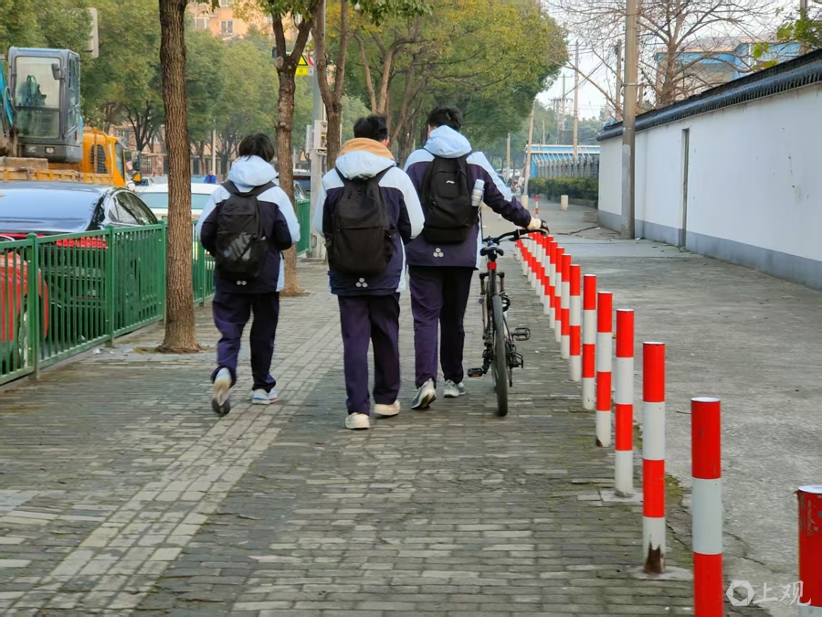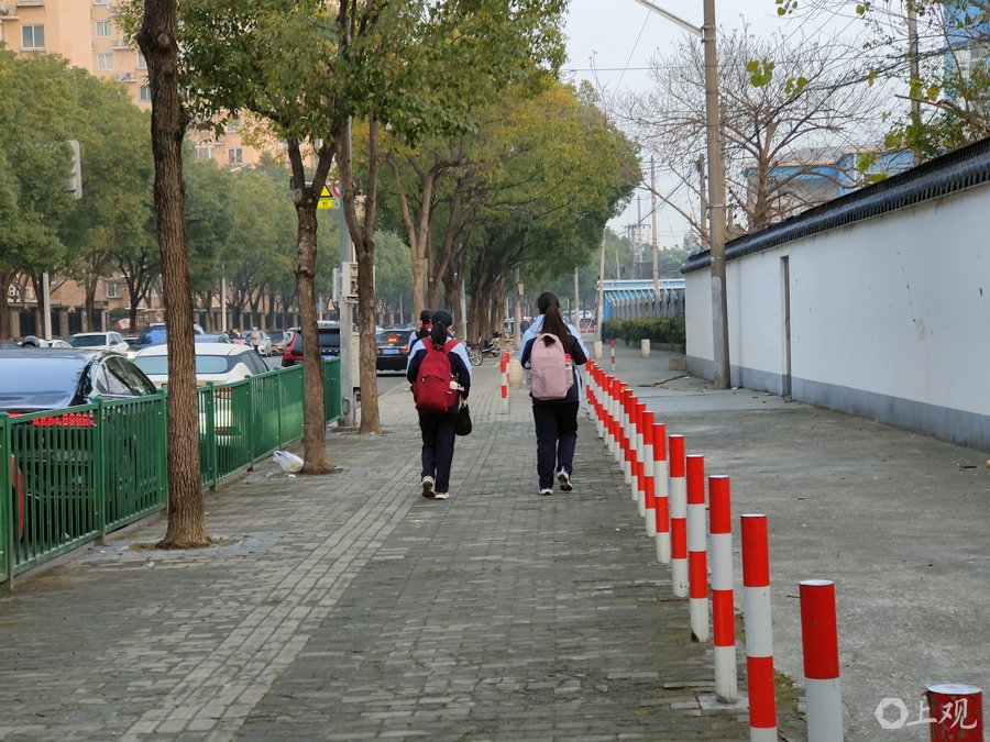 记者在现场看到,原本被包裹“埋住”的红白隔离桩重新露出全貌,路面不见任何快递杂物,此前连片的黄黑快递袋、杂乱纸箱彻底消失,原本被挤占的人行道空间完全“归位”。学生们三三两两结伴而行,自行车也能顺畅推行——这条育人中学学生的必经之路,终于恢复了“人行道该有的样子”。