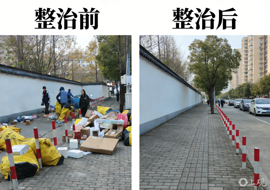 过往市民步伐轻快,不用再侧身躲避包裹,绿护栏与白墙间的通道宽敞得足够两人并行。“这整治来得太及时,之前被那些快递逼着走机动车道,现在脚踩在人行道上,才叫真的安心!”住在附近的郭先生路过时特意停下脚步,对着整洁的路面连说“满意”。